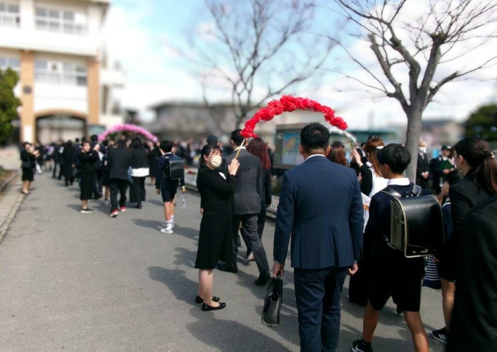 卒業生・保護者登校を迎える
