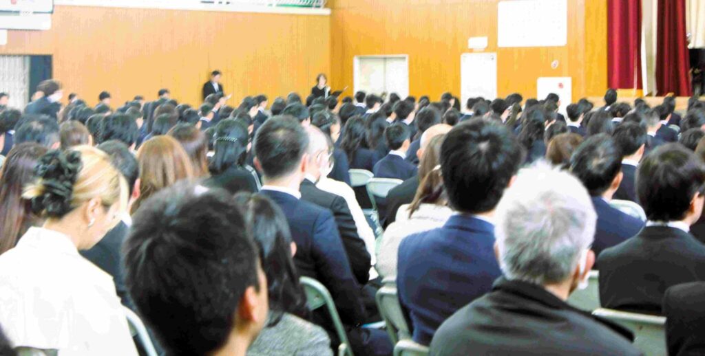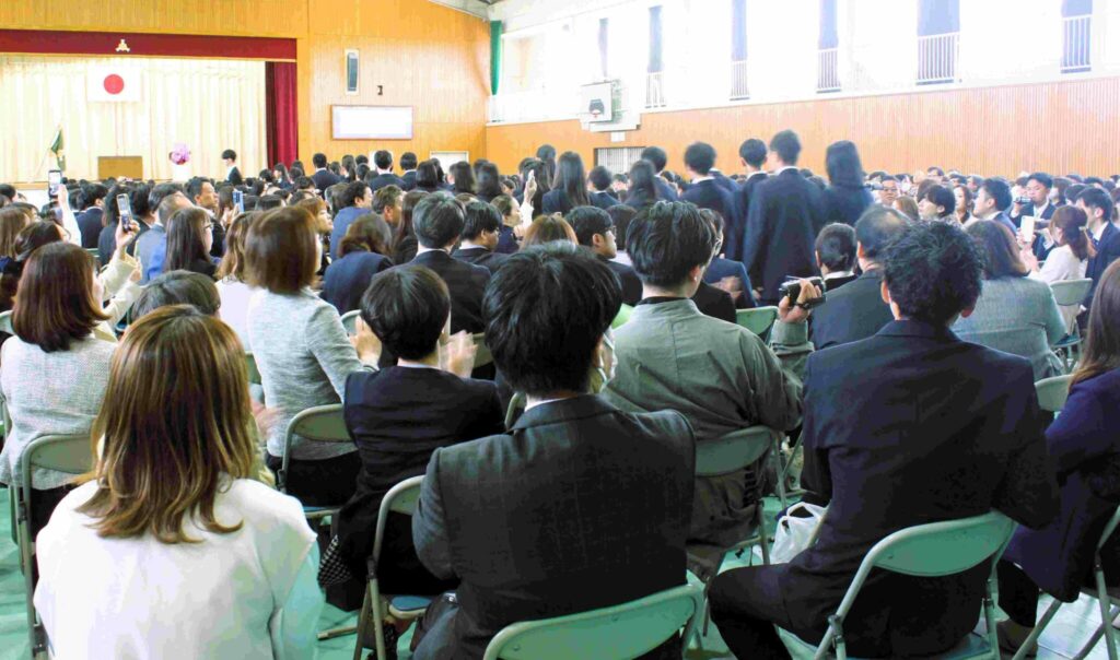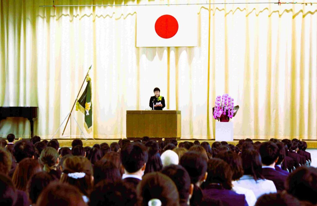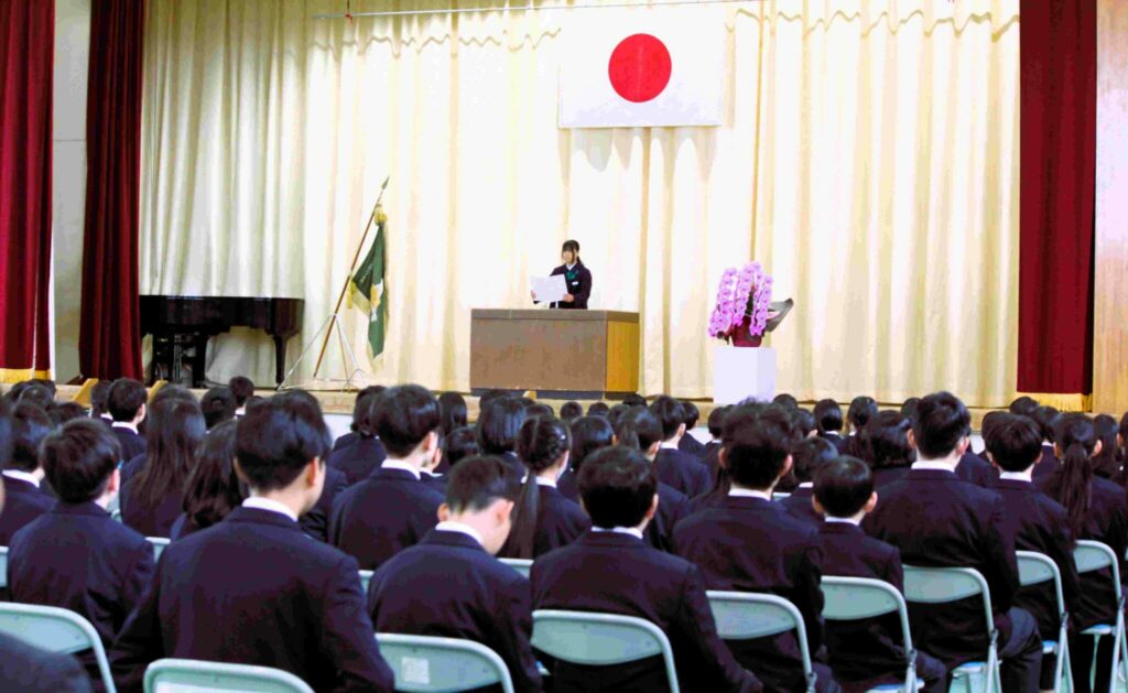 新入生誓いの言葉では「勉強は勿論、部活動、学校生活のすべてを通じて励まし合い仲間を思いやり目標に向かって挑戦し続けます」と。又体育祭・文化祭への期待が述べられ沢山の思い出をつくりたいとも。