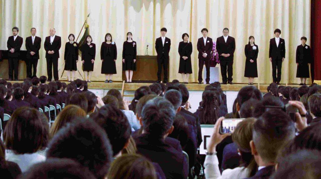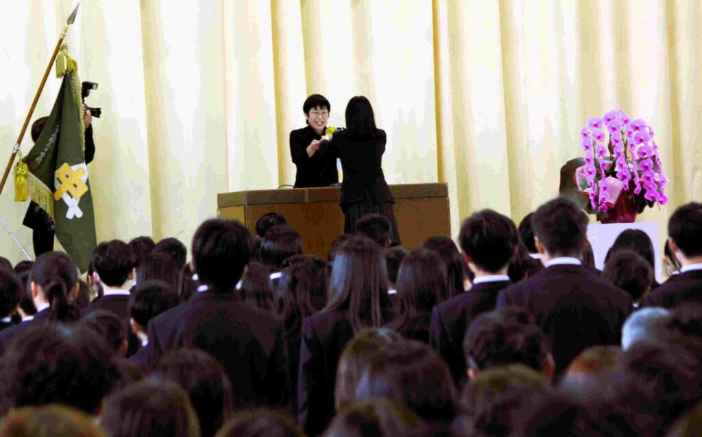 4月9日(木)令和8年度の入学式が新入生250名を迎えて挙行されました。中田校長(今春後楽館中学より転任)は式辞で向学・敬愛・練磨の校訓を引き合いに「自ら学ぶ姿勢を忘れず、仲間とのつながりを大切に仲間と共に一歩ずつ成長を遂げて欲しい。部活動はじめ様々な場面で嬉しいこと・悲しいこともあるだろうけれどその全てがプラスに働く、ただ困ったときは頼って欲しい。」と。又チェコに赴任していた当時、現地でトレイニング中のあの槍投げの第一人者北口選手が「今はまだ発展途上、焦らずゆっくり一歩一歩進んでいくと話されていた」ことも紹介され新入生にくじけることなく、たゆまぬ努力を期待されました。
