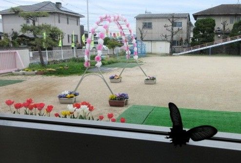 4月13日(月)現校舎での最後の入園式が挙行されました。新入園児の子どもたちを待つ園庭にあのジャコウアゲハが飛翔し「まるでお祝いに来てくれたよう」と幼稚園が喜びに包まれました。(幼虫の餌となるウマノスズクサを園庭のフェンス沿いに成育させ毎年優雅な姿が見られる)新入園児を迎え、26名と人数が減る中でのやや寂しい新学期となりますが、そのぶん一人一人に丁寧に寄り添い、さらには年長・年中児童の協力も得ながら「操南幼稚園って楽しい」「操南幼稚園でよかった」と思っていただける園ずくりを目指してゆきたいと思います。この情報・写真は操南幼稚園 藤田園長から届けられました。