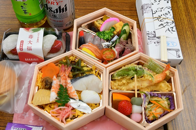 喜怒哀楽の美味しいお弁当をはじめ、苺大福、巻き寿司などお土産もたくさんご用意いただきました。