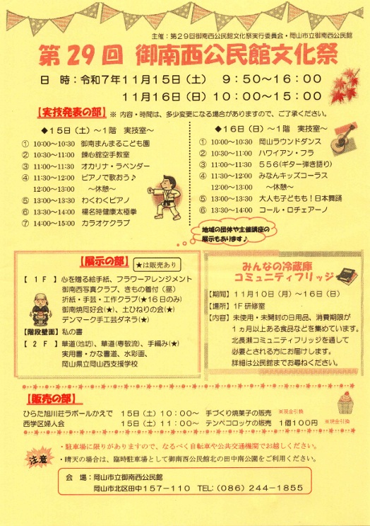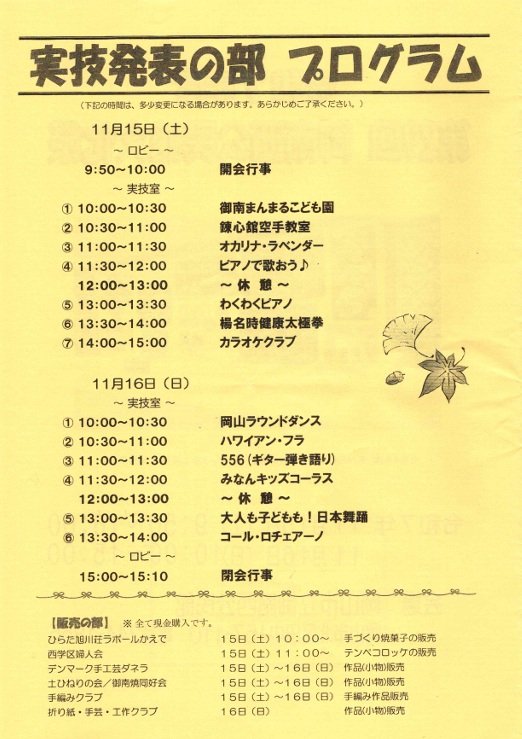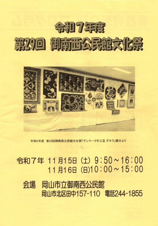 11/15(土)~16(日)の2日に渡り御南西公民館で文化祭が開催されました。