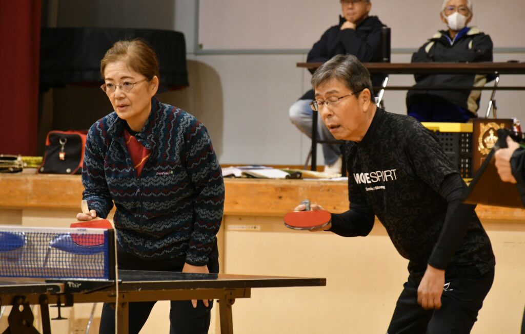 1ゲーム11点制で3ゲーム対戦。試合が始まるとポイントを取るたびに拍手や「いいよ!」と声援が響き、皆、白熱したプレーを展開していました。
