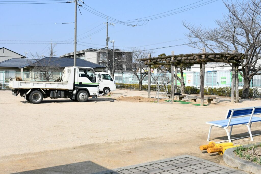 辰巳西公園、田中野田2号公園のように藤棚も更新されるのかと期待していましたが、古いままでした。