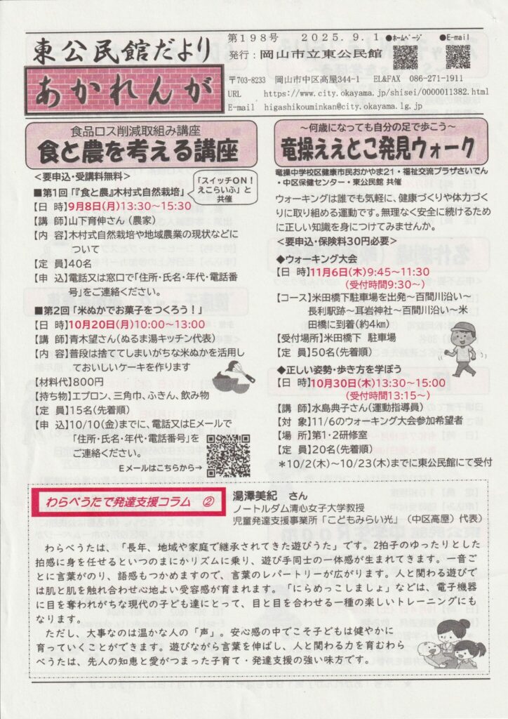 東公民館だより 第198号 2025年9月1日号が発行されました