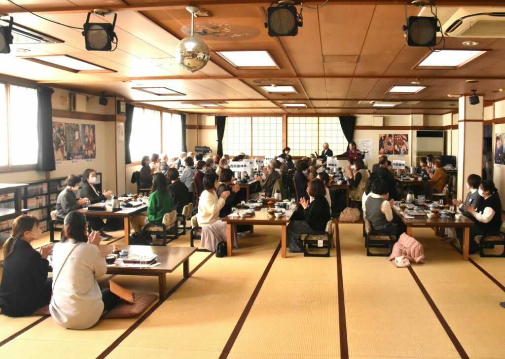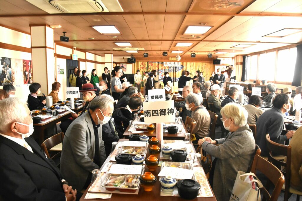 60名以上も集まれば賑やかですね。それぞれ町内別に座りました。