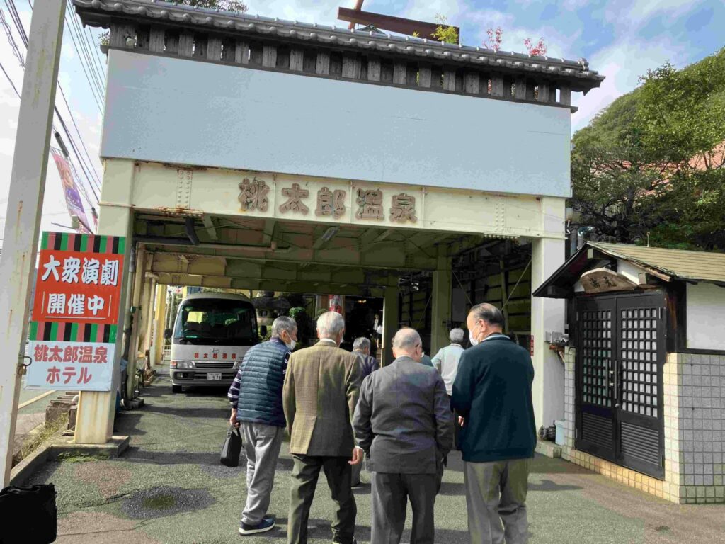 令和7年(2025)竜之口学区敬老会。今年は岡山市北区牟佐の岡山桃太郎温泉で開催されました。学区の3か所から大型バスに乗り、昭和21年以前生まれの方、スタッフを含め、総勢60名を超す参加者でにぎやかに行われました。温泉には入れませんでしたが、皆さんで食事、そして演劇(馬場の忠太郎)で半日を楽しく過ごしました。