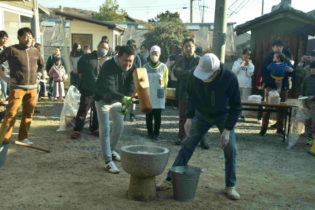 続いては、12月7日、土田町内会の餅つき大会が土田公会堂の前で行われました。