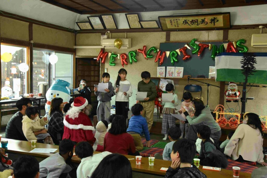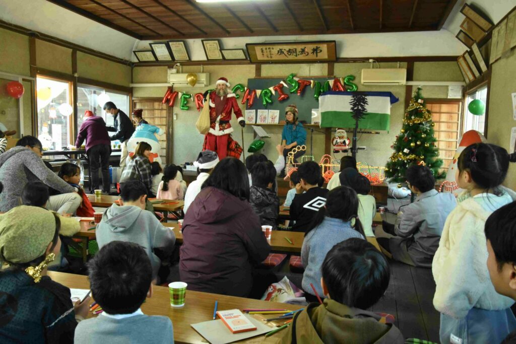 そして、12月13日、土田公会堂では、サンタクロースを迎え、嗜好を凝らしたクリスマス会が盛大に行われました。子ども達の顔は見えなかったけど、みんな真剣なうれしそうな目つきだったでしょうか。