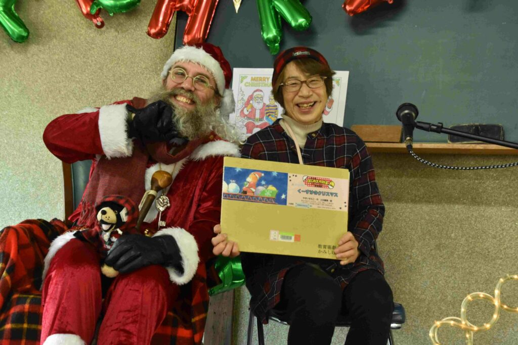 サンタクロースと一緒に、クリスマスにふさわしい紙芝居を観賞しました。