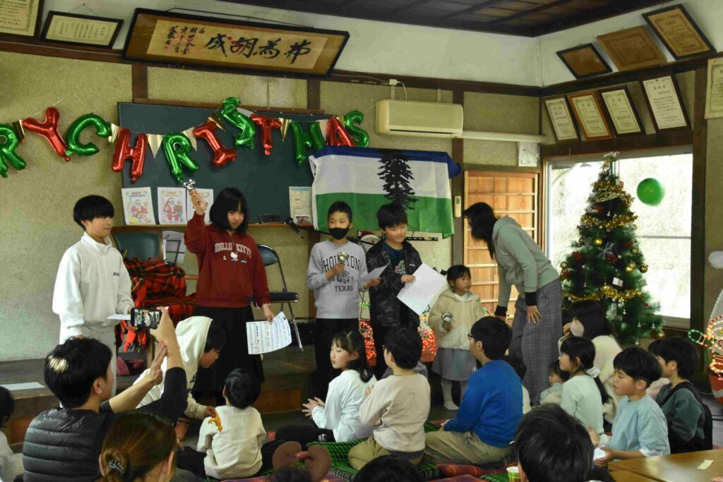 12月6日、中四御神町内会の子どもたちは、竜之口小学校に集まり、クリスマス会の前に、全員で集合写真