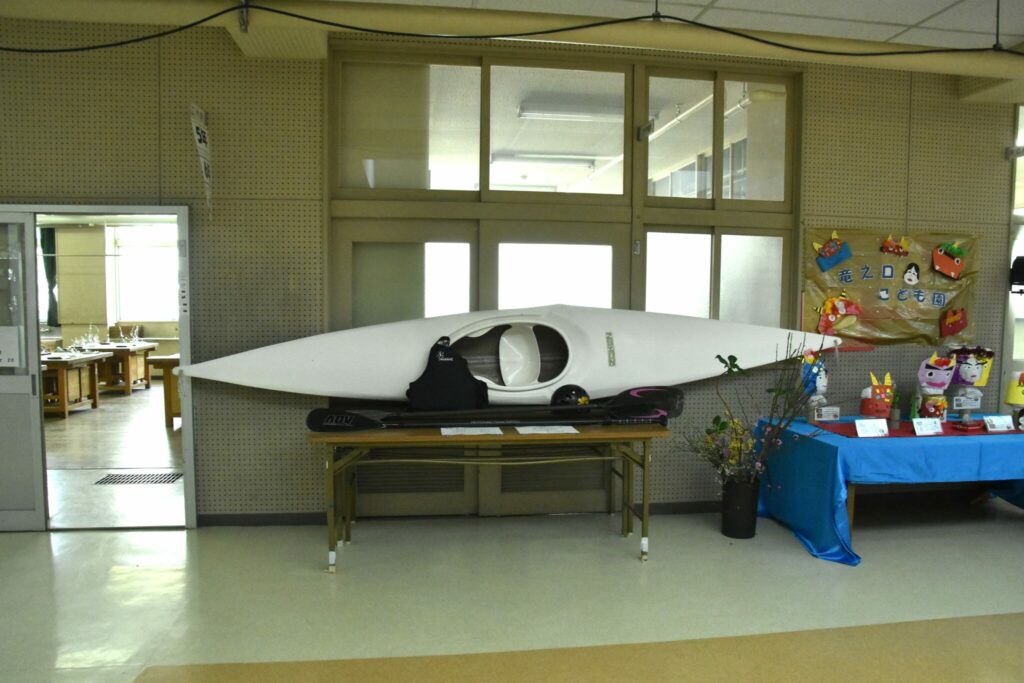 竜之口小学校の先生の作品。そして校長先生の自慢のカヌーが特別展示されていました。