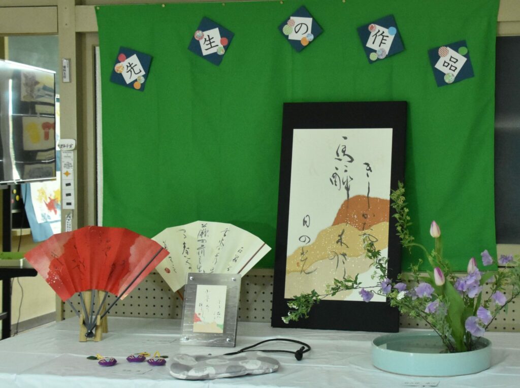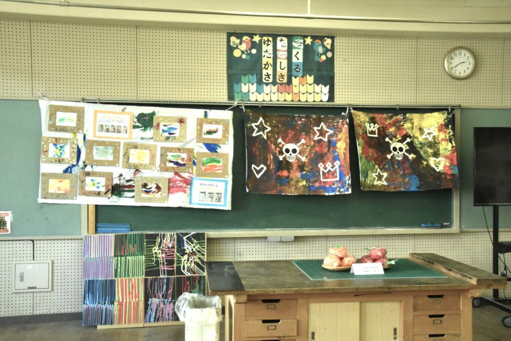 岡山県立岡山東支援学校の生徒さんによる作品。教室内の黒板他に展示されていました。