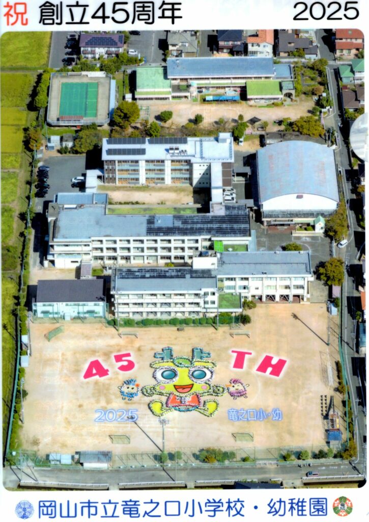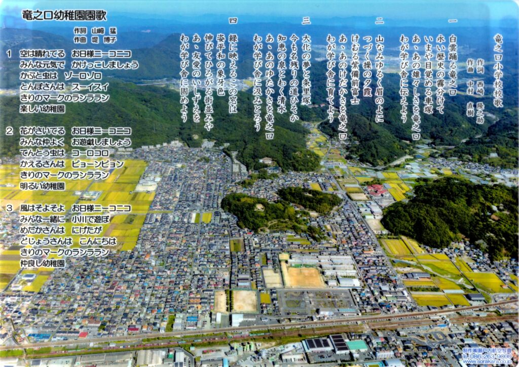 クリアファイルの一方は小学校付近の写真と校歌・園歌が紹介されていました。このクリアファイルは撮影した(株)瀬戸内航空写真と竜之口小学校の監修によるものです。許可を得て引用しました。