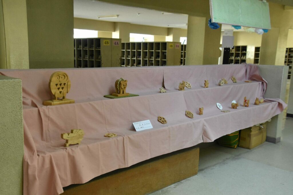 木工細工。真重 満(東雄町)今回は入口付近に展示されていました。