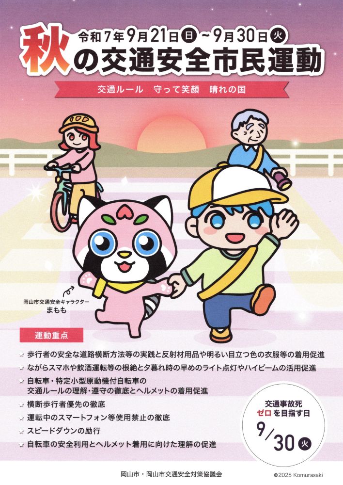 秋の交通安全市民運動の幟旗を設置 投稿日:2025年9月21日 酷暑が続きますが、朝夕は少し秋らしくなってきた9月20日(土)午前8時から“秋の交通安全市民運動”の「交通安全幟旗」の設置が行われました。 富山学区交通安全対策協議会の呼びかけに、富山学区の各団体や、各町内会・団体から17名が参加しました。 富山学区連合町内会の小橋会長、交通安全対策協議会の垣内会長のあいさつの後、参加者は予め組み立てられた幟旗を手に、通学路を中心に割り当てられた担当エリアに移動し設置しました。 街頭啓発活動は 9月24日(水)午前10時~11時 ハローズ円山店前にて行われます。 (文・写真:横地) カテゴリー:ニューストピックス 地域団体活動