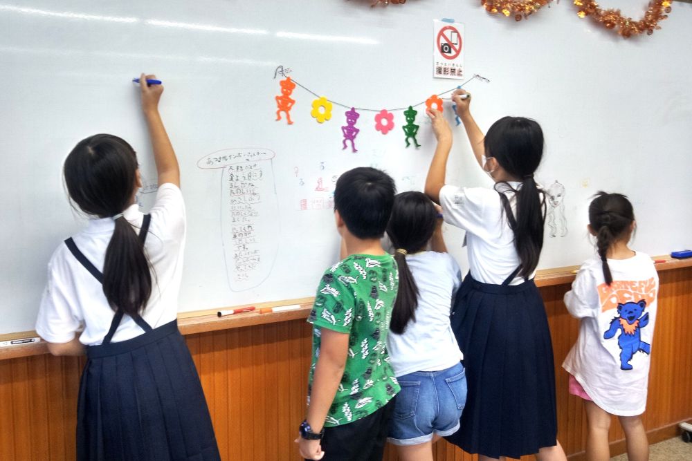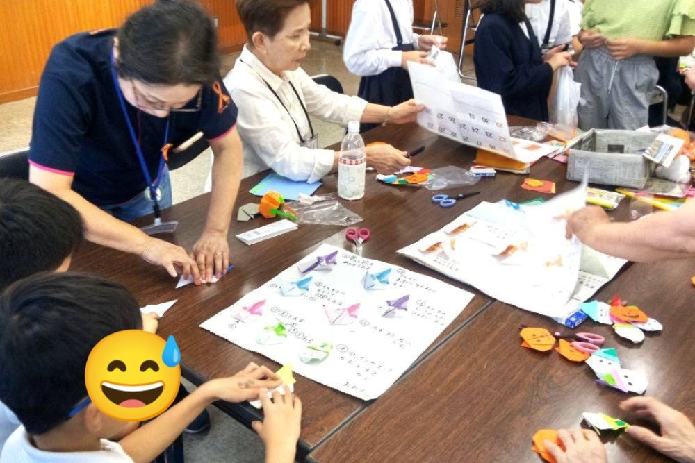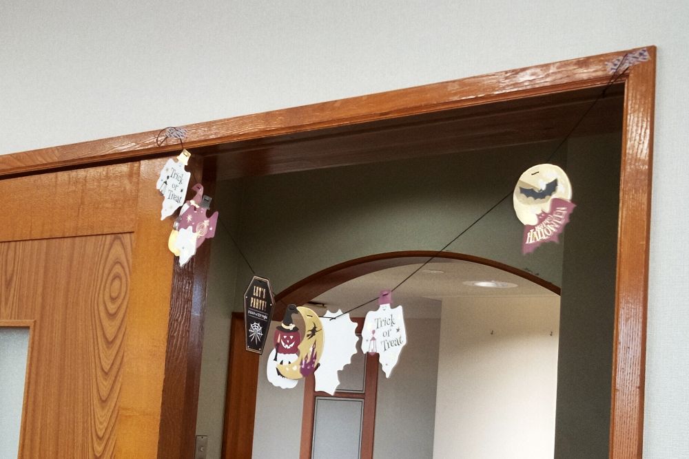 各種ゲームがずらりと揃い、卓球もお手玉も塗り絵も独楽も、それに白色ボードに絵も楽しめる中、今回は特に、今月末のハロウィンを前にしてハロウィンリース作りを楽しみました。制作中の子どもたちは表情も手の動きも真剣そのもの。部屋のあちこちに飾ります。