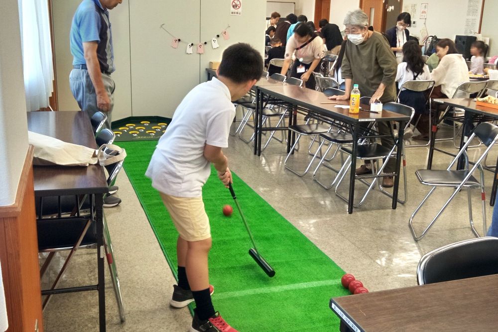 また、海吉出村町内会ダイヤモンドクラブのご厚意で、スカットボールが設置され、ボールをスティックで叩いて穴に入れるこのゲームに子どもたちは、そして幾人かの大人たちも夢中になっていました。
