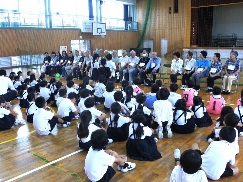 朝夕が秋めいてきた10月16日(木)午前9時30分から富山小学校体育館において、21名のボランティア先生による1学年の生活科「昔あそびの会」の学習支援が行われました。