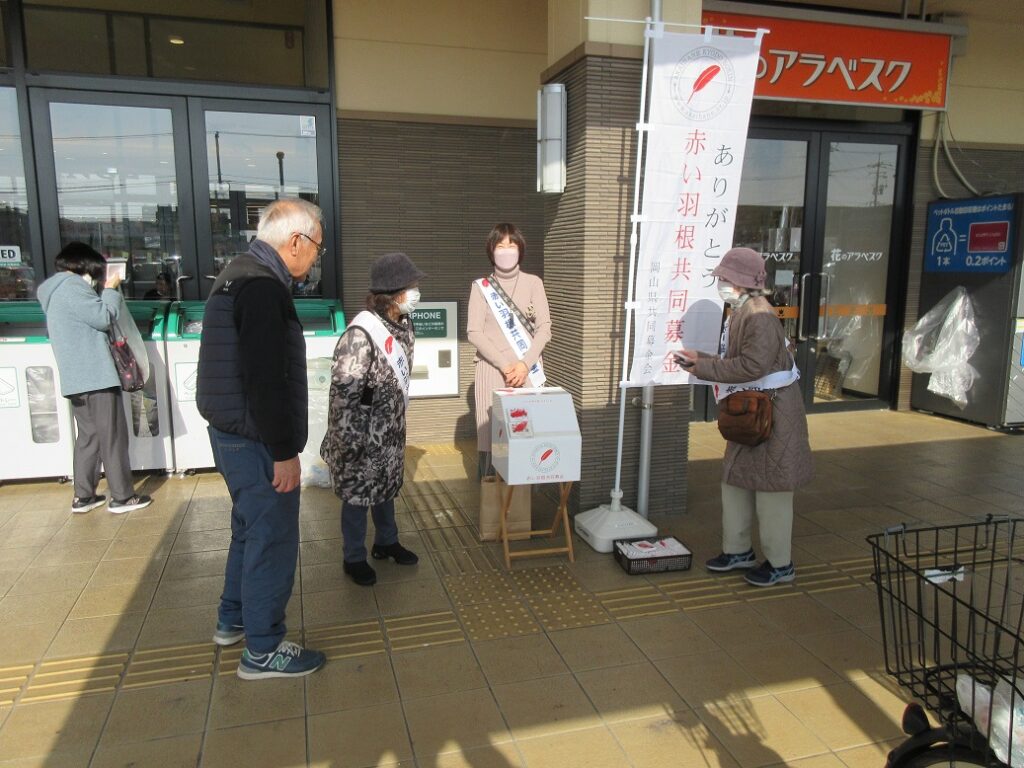 今年も残り1カ月となった12月2日(火)、3日(水)の午前10時30分から午後1時30分まで、天満屋ハピーズ円山店とハローズ円山店の店舗入り口において富山地区社会福祉協議会主催で「赤い羽共同募金の街頭募金」が行われました。