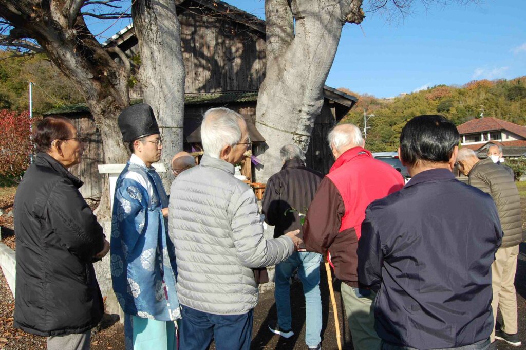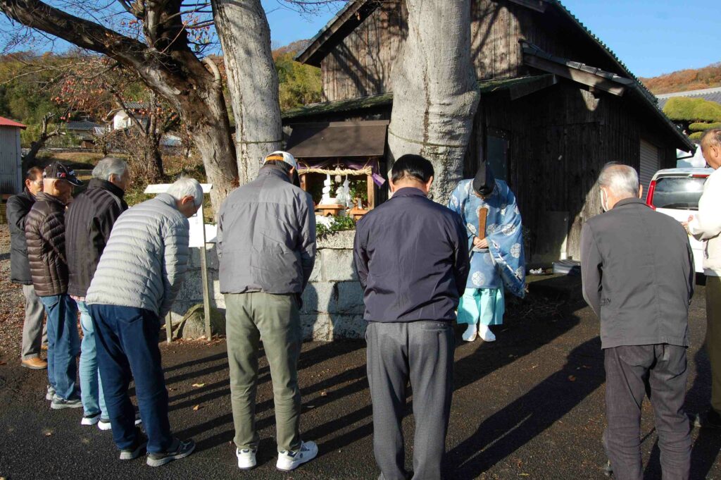 令和7年12月14日(日)午前9時から、海吉本村と中村の村境に鎮座する“賽の大神(道祖神)”祈願祭が10数名の方々の参拝を得て執り行われました。(祭祀は毎年12月第2日曜日)