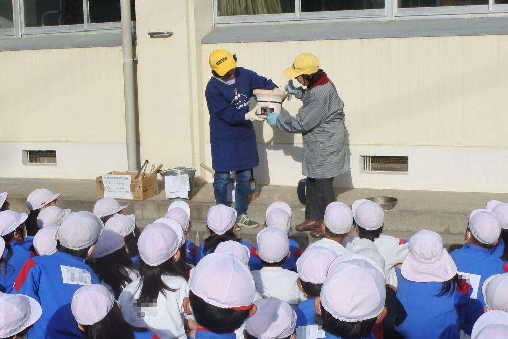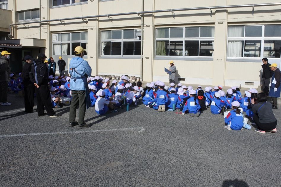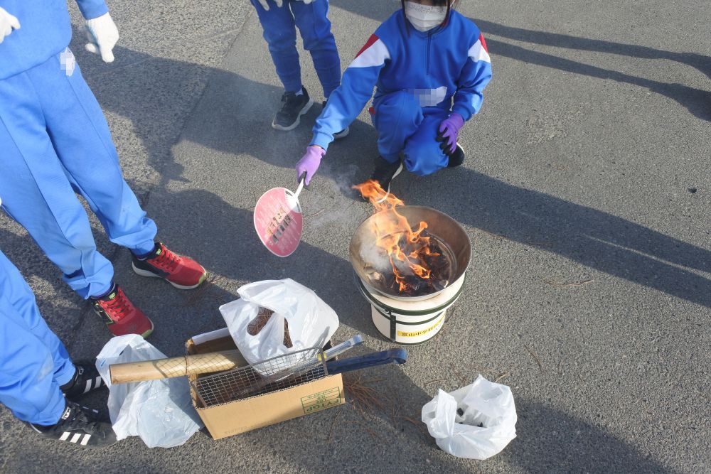 1月21日(水)に富山小学校で3年生の授業「昔体験をしようー七輪を使っての餅焼きー」が行われました。
