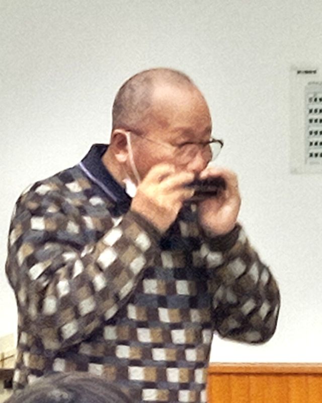 厳寒の1月26日(月)、午前10時から富山公民館の2階で第95回オレンジカフェ『青春』が開催されました。福森和子会長の挨拶に続き、池田俊夫副会長のハーモニカ伴奏で、スタッフを含めた参加者31名がいつもの「青い山脈」を元気に歌ってスタートです。