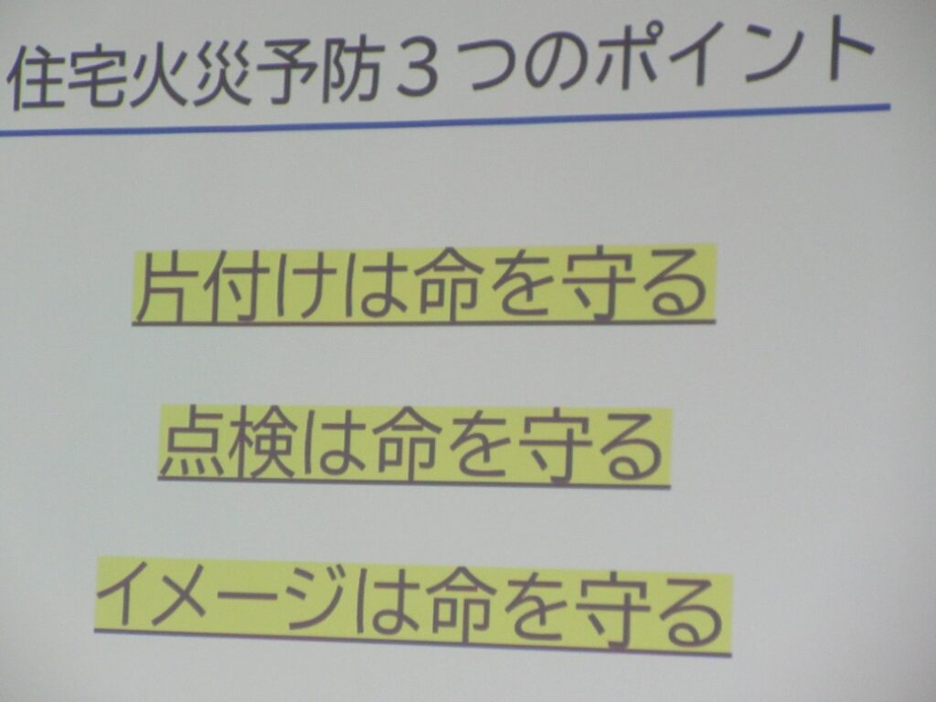 死者の方は逃げ遅れに伴うもので、逃げ遅れにならないためには火災報知器の設置はもちろん日頃の点検も必要ということです。火災報知器にも耐用年数があるので日頃の電池のチェックとともに気にかけておくことが大切です。また、火災に遭遇したらパニックになってしまうので、日頃から事前に行動を考えて訓練しておくようにとのことでした。