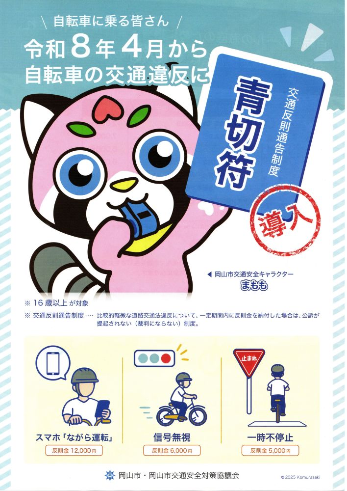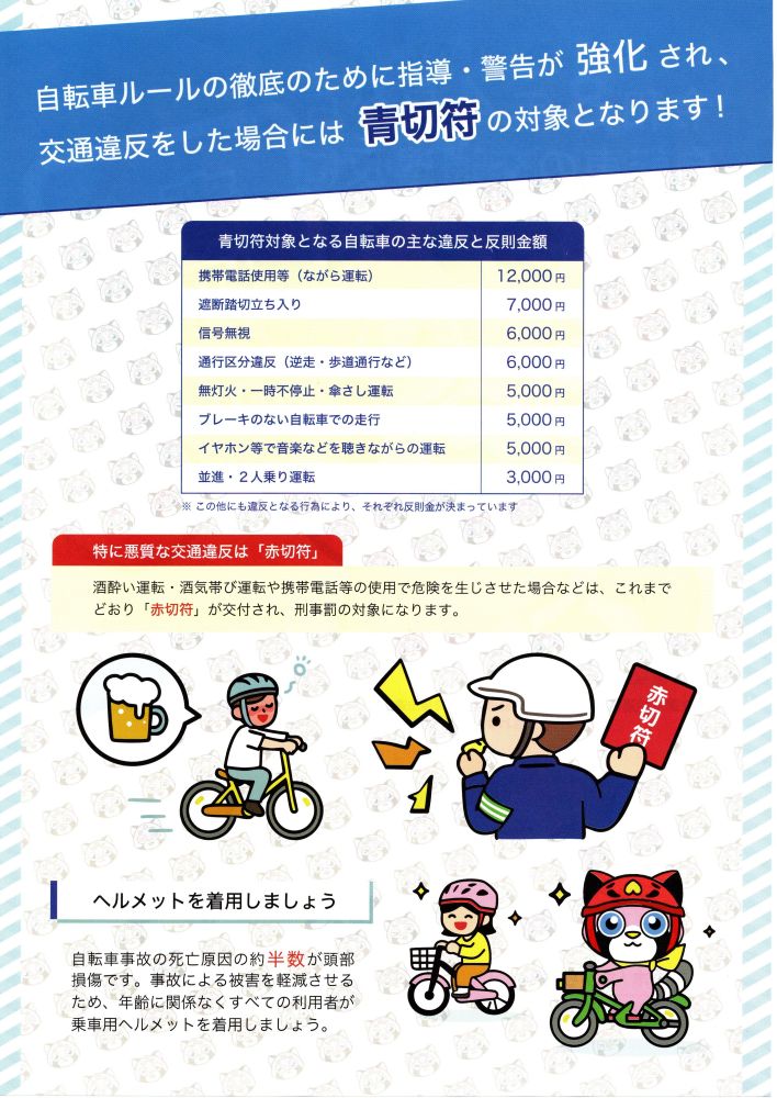特に令和8年4月から自転車の交通違反に交通反則通告制度(青切符)が導入されスマホ「ながら運転」信号無視一時不停止などが取り締まり対象になりました。交通安全により注力したいものです。