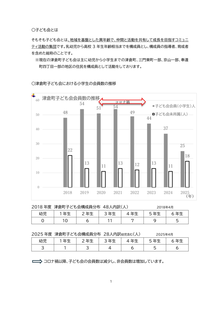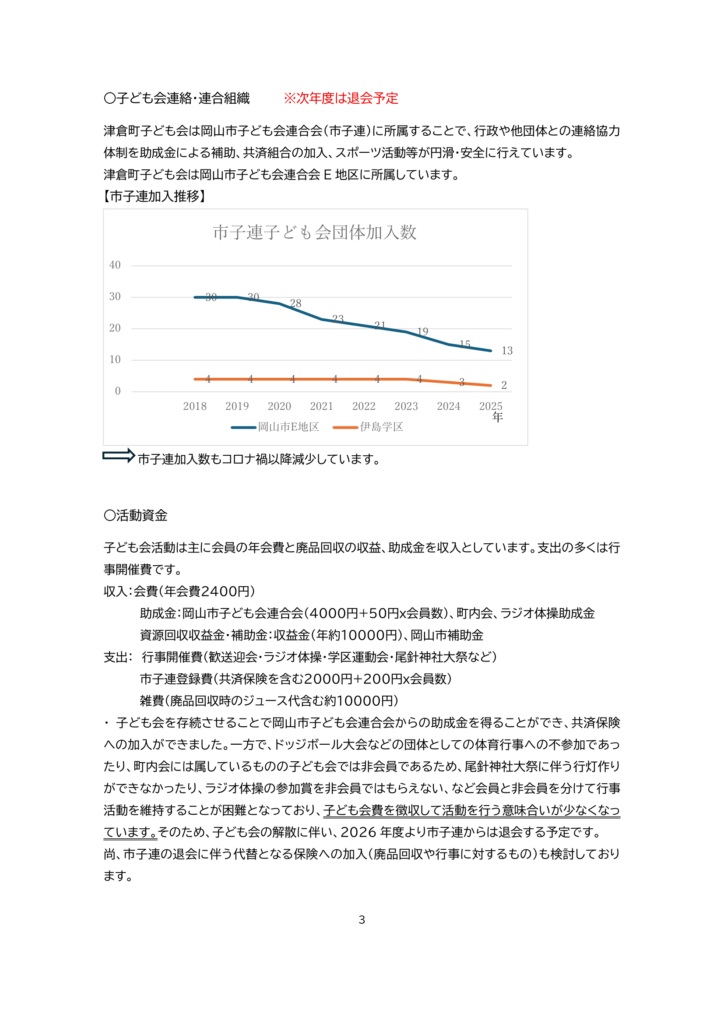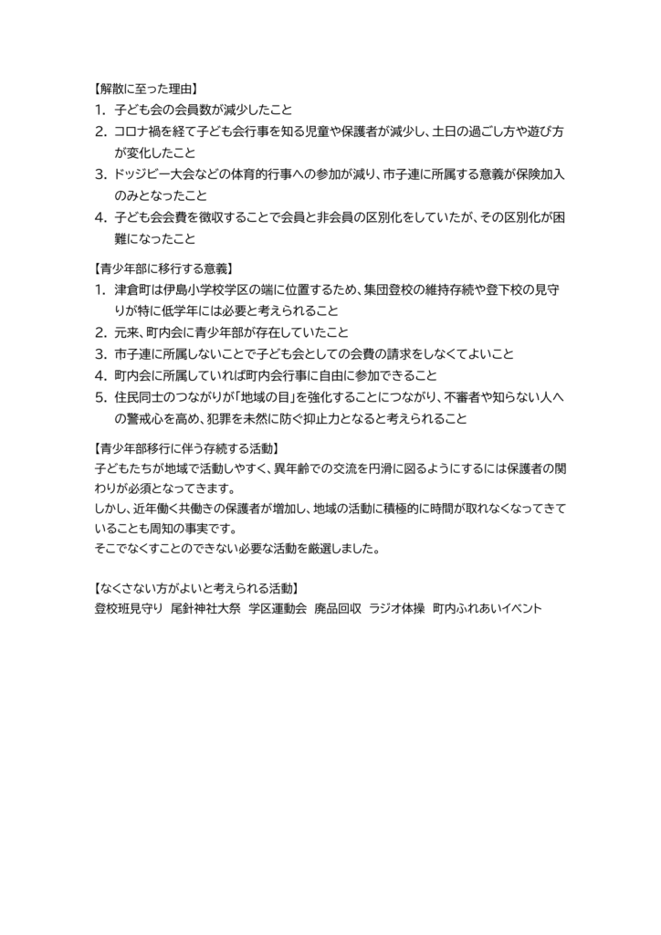 津倉町町内会青少年部の活動について青少年部移行についてのアンケート結果と今後についてのお知らせ