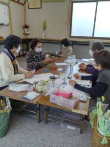 布花教室 投稿日:2025年2月24日 2月16日に布花教室が開催されました。 今月のお花は、明るい萌黄色の小さい花びらを、たくさん集めてストックを作ります。 明るい色に一気に春の訪れを感じます。 今月の集会所のお花は、落ち着いた深紅のバラに白い小花をあしらって、華やかな中に落ち着いた雰囲気です。 作者は細川展子さんです。 カテゴリー:文化部