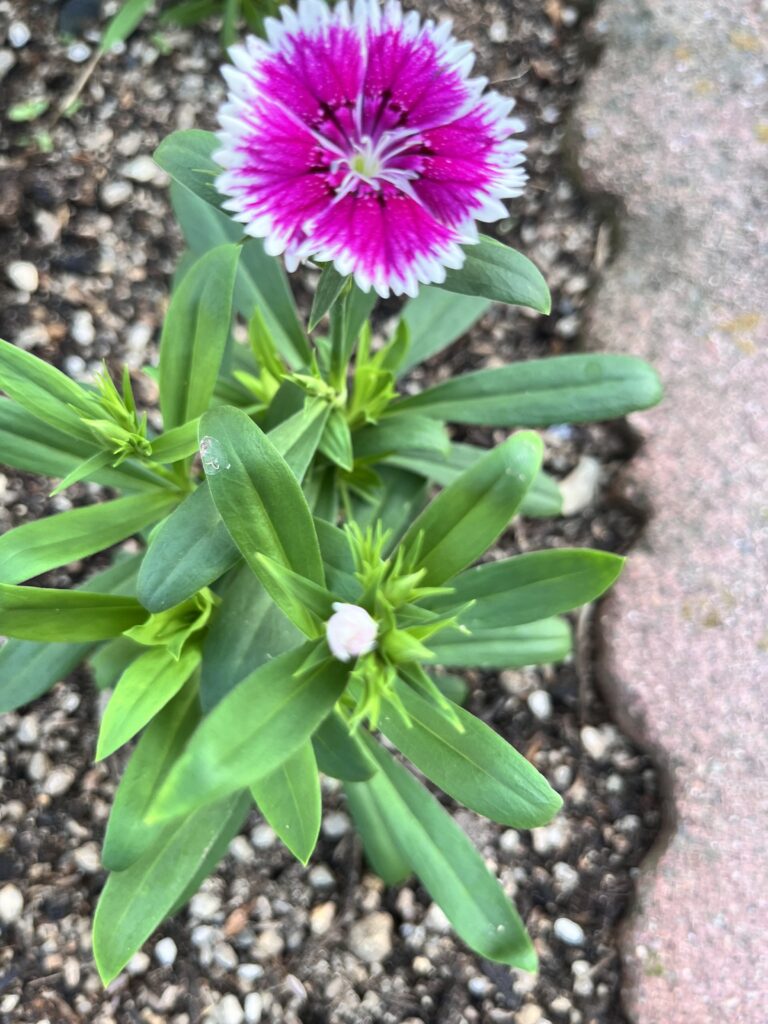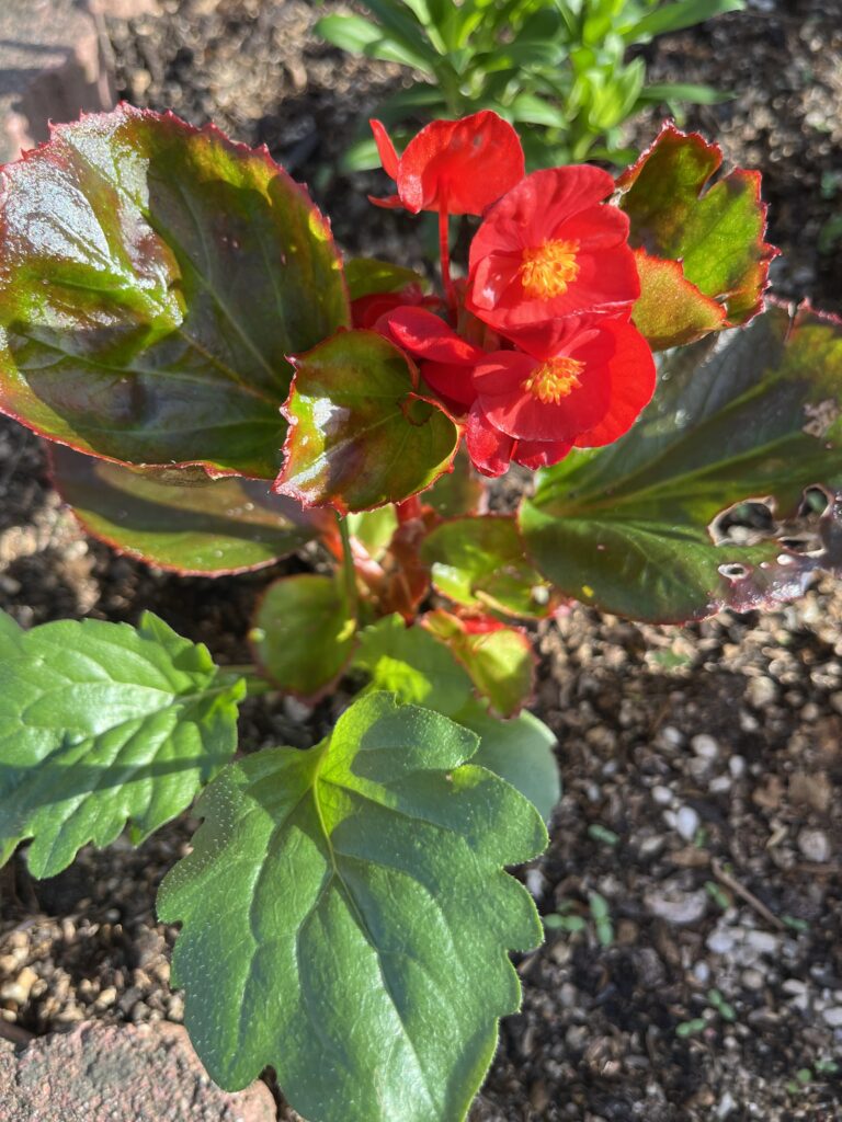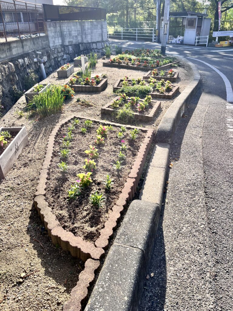 ベゴニアとナデシコを植え込み、季節の彩りを添える花だんとなりました。