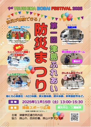 来る2025年11月15日(土曜日)、津島スポーツ広場において「第1回 津島ふれあい防災まつり」(*1)が開催されます。
