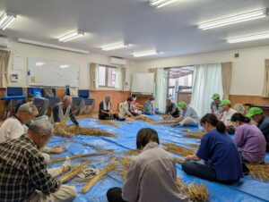 10月18日(土)午前8時30分より、福居公会堂にて来週末の秋祭りの準備として、しめ縄作りをおこないました。