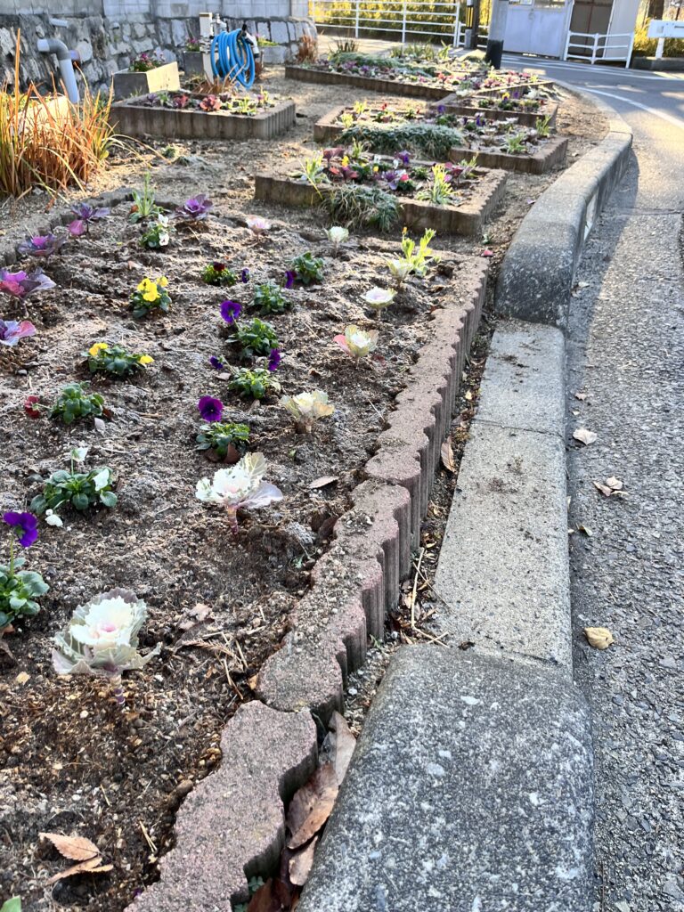 福居花だん 12月の植え替え 2025/12/23 カテゴリー: お知らせ, すべて表示, 福居の自然 花だん植え替えのお知らせ先日、福居花だんの植え替えを行いました。お花は、葉牡丹とビオラです。冬の花だんを、ぜひご覧ください。 朝は霜が降りていました。