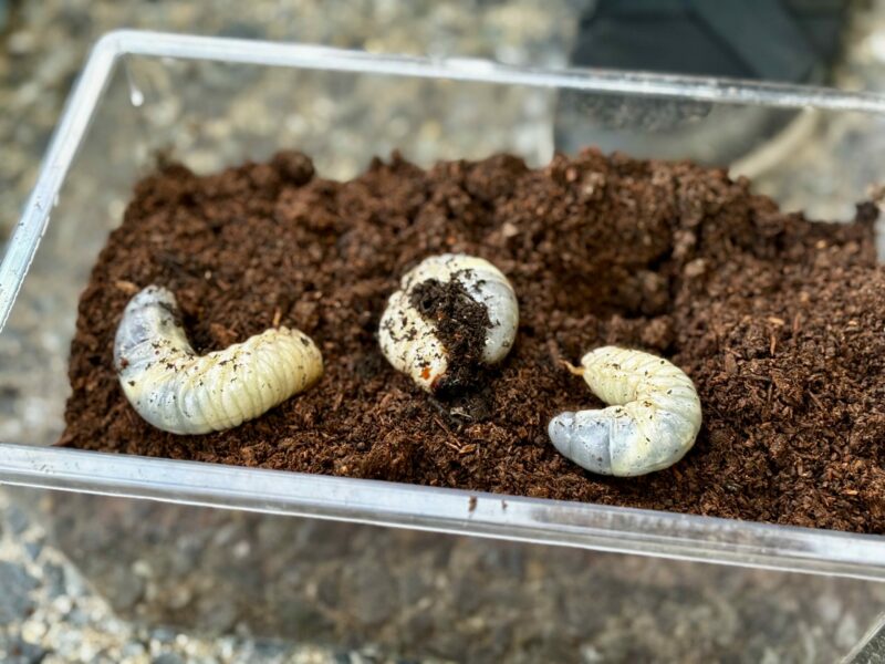 カブトムシの幼虫【子ども係】 2025/12/26 カテゴリー: キッズ, すべて表示, 情報提供 9月に町内会の方から分けていただいたカブトムシの幼虫が、少しずつ大きくなっています。 幼虫の間は土の中で腐葉土などを食べて過ごし、夏頃になると成虫となって土から出てくるようです。 正直、子供が育てたい!と言うから飼おうと思ったものの、親の私は触れないし見た目もちょっと怖い…(笑) 土の中にいる間も、成虫になるまでに何度か土を変えたりお世話が必要です。果たして無事に成虫に会えるのか!? 子供と夏を楽しみに、成長を見守りたいと思います。