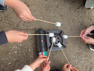 1月のプレーパークは、冬とは思えない暖かな一日でした。冷たい風もなく外遊びにぴったりの陽気の中、まずは楽しみにしていた焼きマシュマロ!外はこんがり中はトロトロで、甘い味に笑顔がこぼれます。
