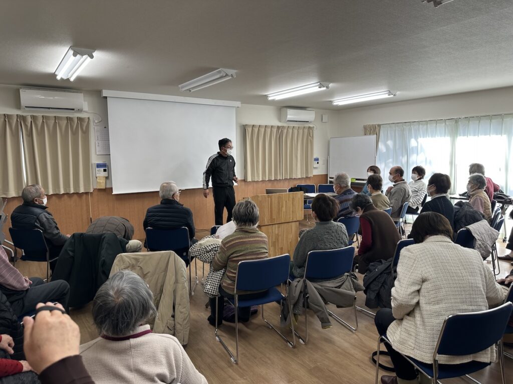 福寿クラブでは、1月21日(水)福居公会堂にて、健康運動指導士の石尾正紀氏(岡山スポーツ会館)を講師に迎えて、標記イベントを開催しました。