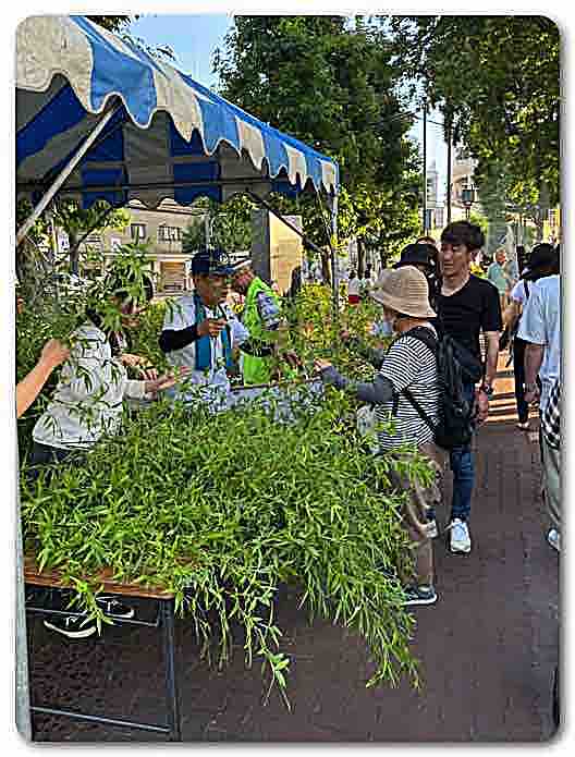 七月市では,笹竹が無料配布されます。この笹は町内の有志の人が育てているので,午前6時に配布を始めますがその30分前に収穫しています。
