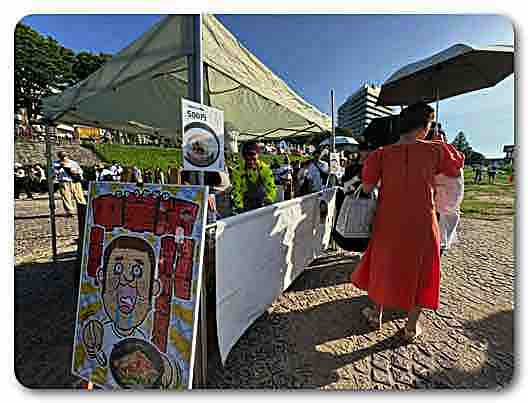 本日,会場の賑わいは通常と変わらない多くの人たちが集いました,出展数も110店程度の様子です,会場内を滞留される人も多い模様です。会場では,手指消毒,混雑緩和,食中毒予防など衛生管理も行います。
