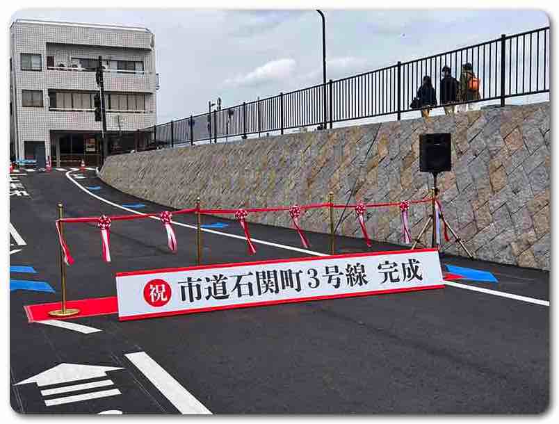 お天気はくもり,気温は15〜20度の模様です。岡山市の石関町を南北に通る市道,石山公園の交差点と鶴見橋西詰の400メートルを結ぶ石関町3号線が本日28日午後3時からクルマや二輪車などが通行可能になります。この道路は,後楽園・岡山城周辺の回遊性向上のため,岡山市が10年以上を費やしていた旭川沿いの市道です。この度,改良工事が完了しましたので,開通します。道幅を最大3倍超に広げて,電線は地中に埋める無電柱化を実施しているようです。河川敷の遊歩道などと一体的に利用ができるようになっています。テープカットの準備中の写真は,中塚利信さん(石関町)が撮影しています。岡山市の資料は,市のホームページのPDFアーカイブより画像にしています。