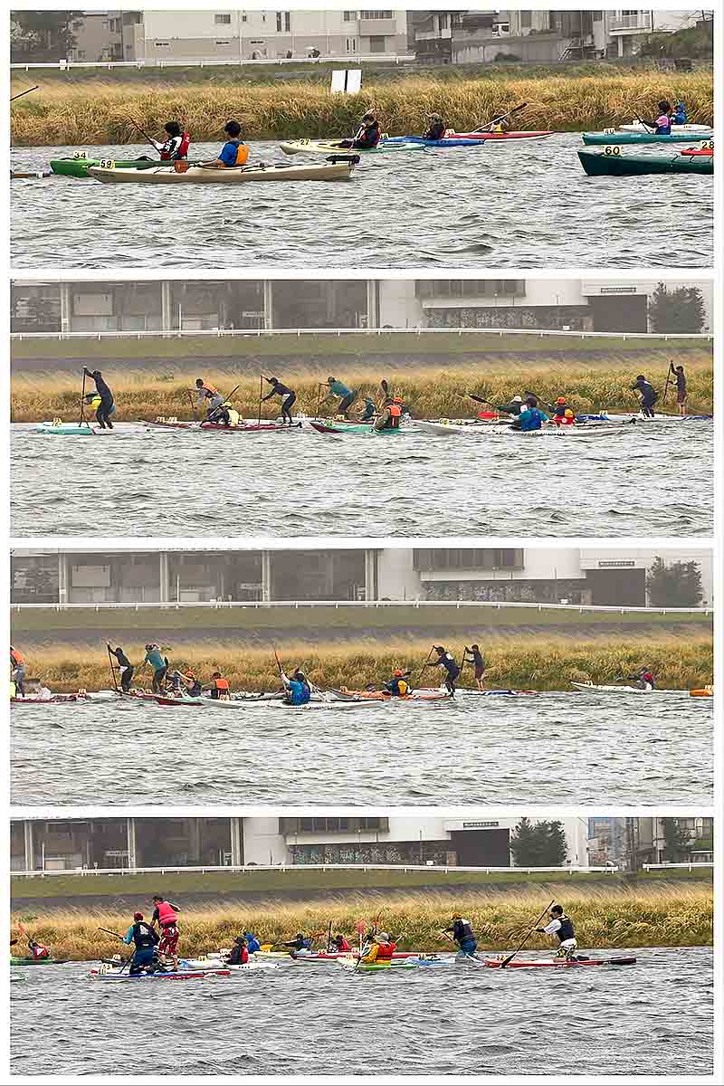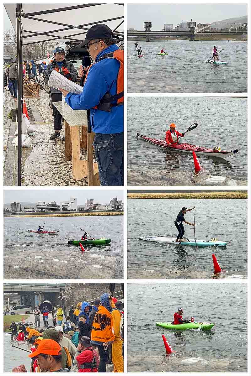 お天気は雨天のち曇りです。南海上に寒冷前線が東進,そのため前線が通過する際,降雨と進行を遮る南西風が強く吹く(10m)ため選手たちはゴールインの時にその時間帯が重なり体幹を発揮してパドルを操る姿が感動的でした。
