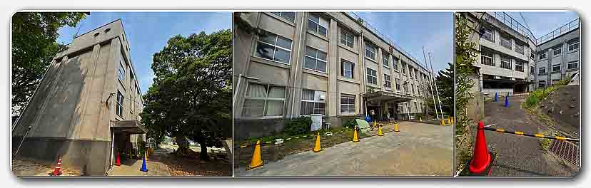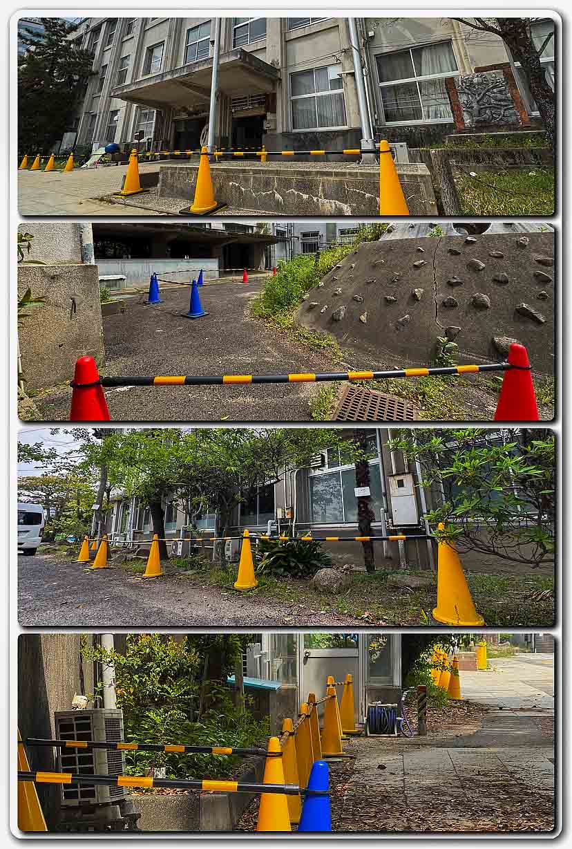 ▼ 内山下小学校の校舎外壁が劣化している箇所多い 安全対策と校舎周辺にバリケード設置 追記4/24