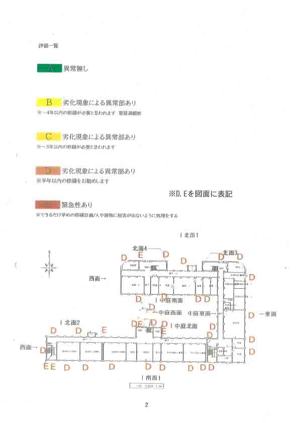 内山下小学校の校舎の外壁が剥落の恐れあり その調査結果を図面に明示した