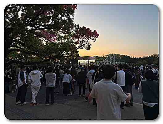 お天気はくもり晴れ,気温は15〜21度。烏城公園の天守閣広場では4月25日(金曜日)から5月6日(火曜日)まで 「春の烏城灯源郷」が行われます。今年で19年目を迎えました。