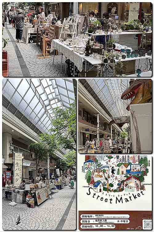 上之町・表町商店街では,17日(土)〜18日(日)10時から16時でストリートマーケットが行われます。手作りアクセサリー,雑貨服,焼き菓子,飲食品などを販売しています。県外からやってくる販売業者もいます。