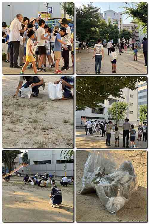 31日はラジオ体操が終わってから全員で水之手公園を清掃します。草取りも行います。子供たちも大人たちも一緒にワイワイおしゃべりしながら草取りに励むとあっという間に公園が綺麗になります。