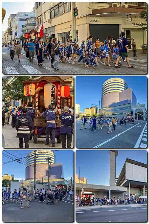 2025/07/24 上之町のだんじり 商店街の町内を周回してRSKビル前へ 休憩してから甚九郎稲荷に到着