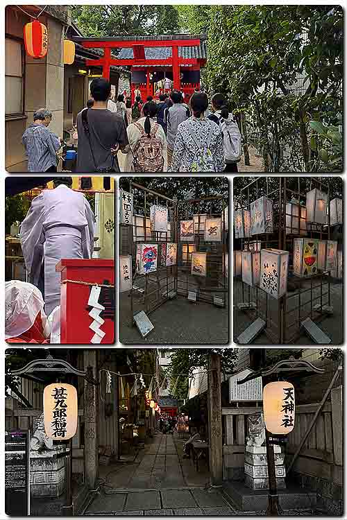 甚九郎稲荷にお参りします。子供たちが描いた行燈も飾りつけ。うちわ抽選会で豪華景品が当たります。