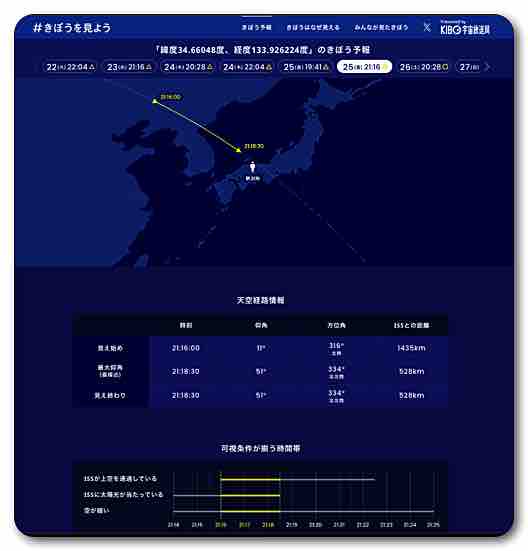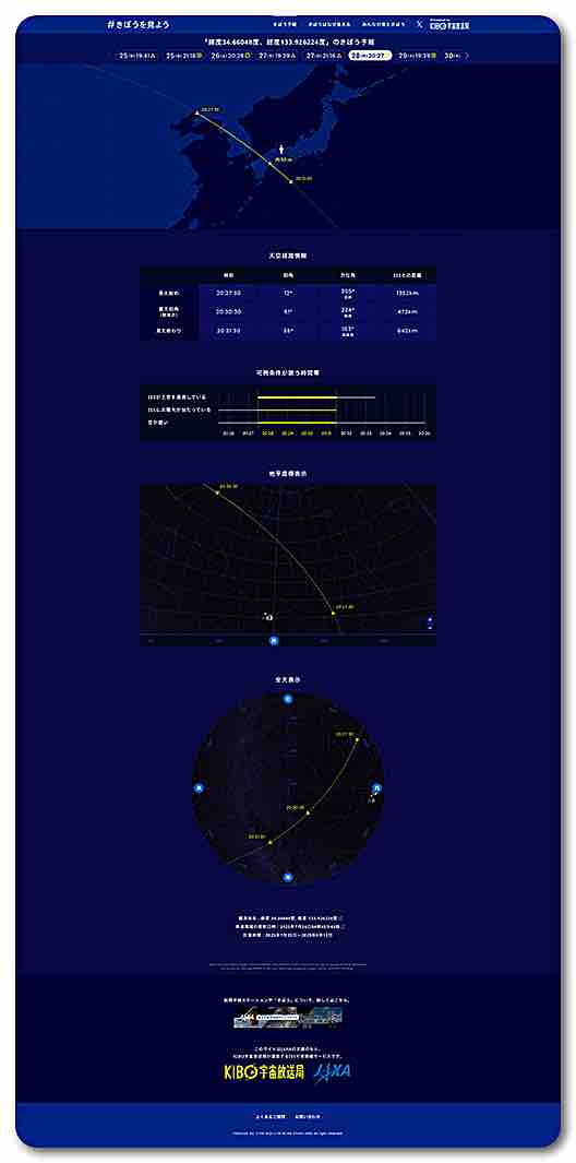 §外部リンク きぼう 予報のホームページ 随時飛行中の場所を案内します